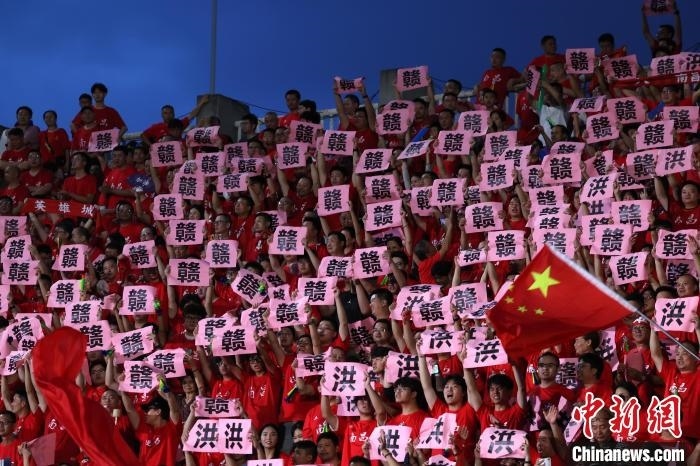 7月12日晚,“贛超”揭幕戰(zhàn)由東道主南昌隊(duì)迎戰(zhàn)景德鎮(zhèn)隊(duì),吸引近1.5萬(wàn)名觀眾涌入南昌八一體育場(chǎng)觀賽。中新社記者 劉占昆 攝