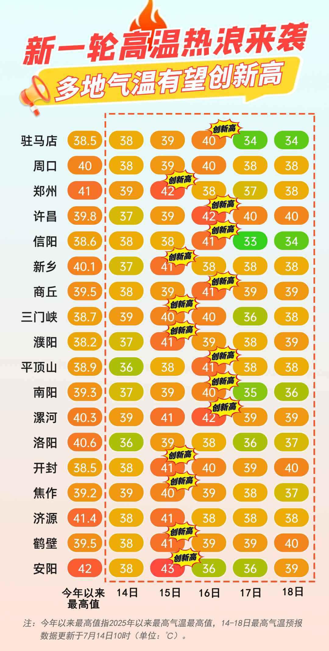 昨日(14日),河南多地氣溫沖破40℃,省、市兩級氣象臺相繼拉響最高級別的高溫紅色預(yù)警。據(jù)省氣象臺數(shù)據(jù),當天全省共發(fā)布128條高溫預(yù)警,71個縣市氣溫高于40℃。