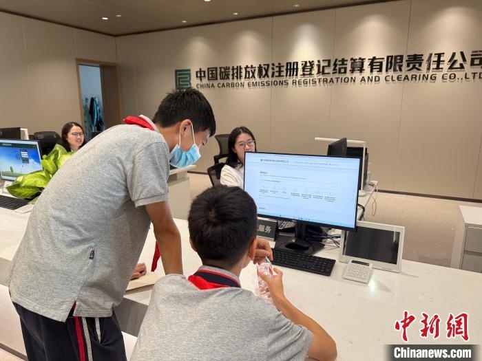 圖為開放日當(dāng)天學(xué)生模擬買賣碳配額。 王夢(mèng)媛 攝