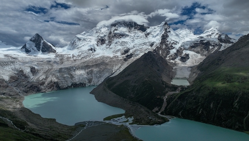 7月19日拍攝的薩普雪山及延伸的冰川(無人機(jī)照片)。