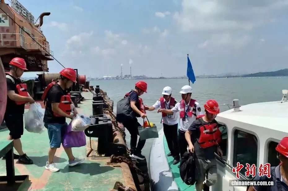 8月12日,福建海事局工作人員動(dòng)員海上作業(yè)船只工作人員離船避風(fēng)。中新社發(fā) 福建海事局 供圖