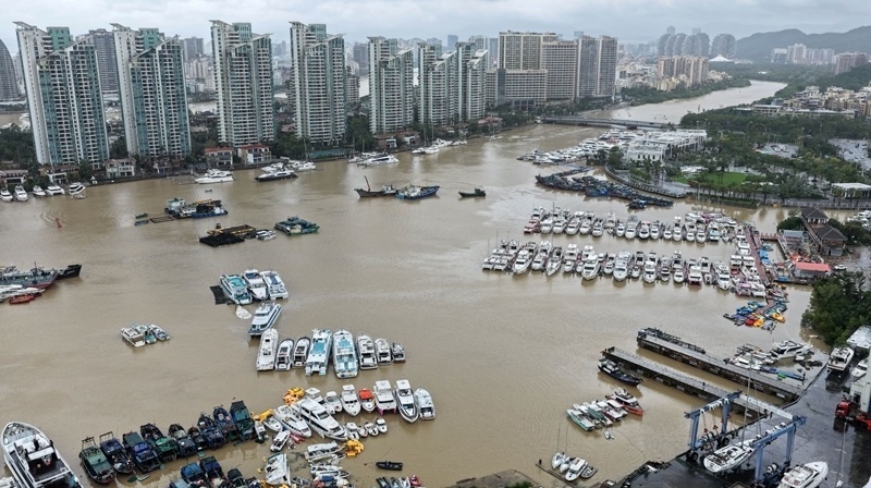 8月25日,海南省三亞市南邊海國際游艇碼頭逐步恢復生產秩序(無人機照片)。