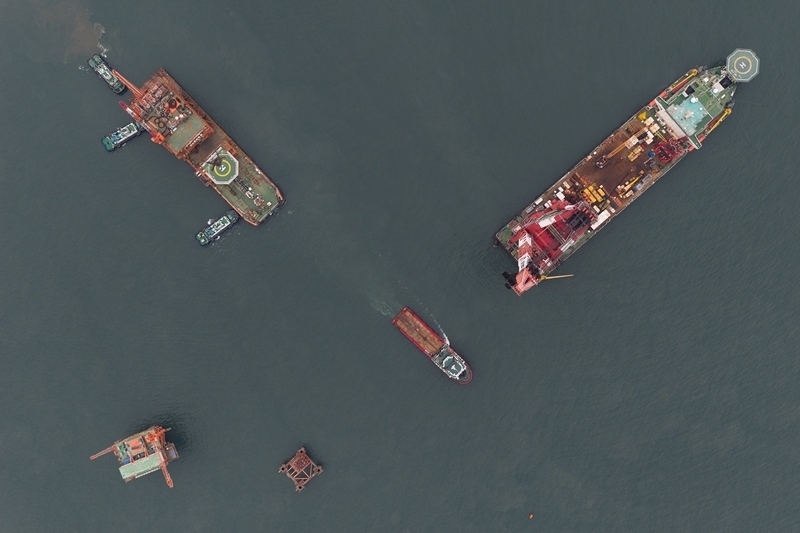 這是9月8日在渤海海域拍攝的墾利6-1油田10-1北區(qū)塊Ⅱ期開(kāi)發(fā)項(xiàng)目油氣平臺(tái)安裝作業(yè)現(xiàn)場(chǎng)(無(wú)人機(jī)照片)。