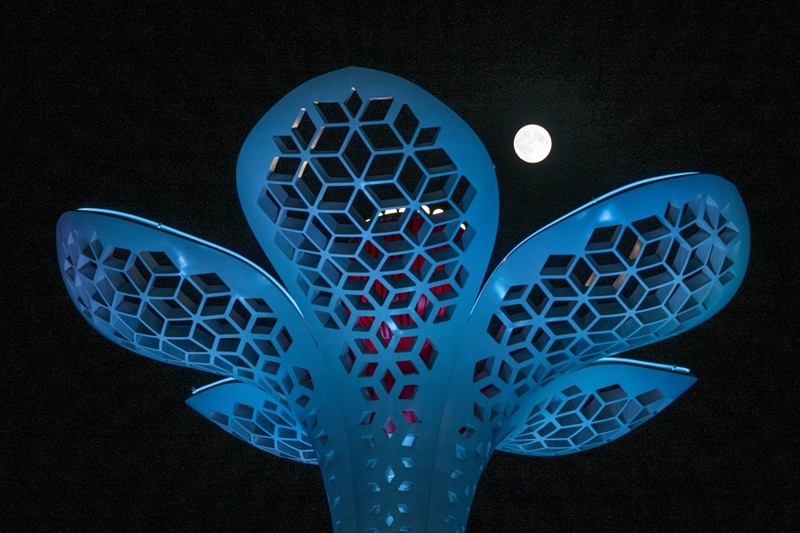 10月6日在天津市濱海新區(qū)泰達(dá)航母主題公園拍攝的中秋滿月(無(wú)人機(jī)照片)。