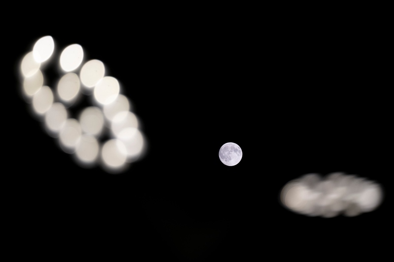 10月6日在黑龍江省哈爾濱大劇院拍攝的中秋滿月(無(wú)人機(jī)照片)。