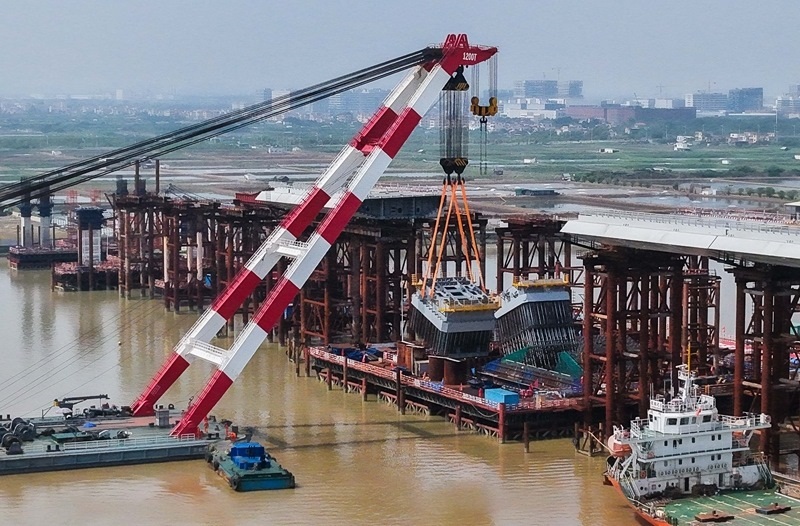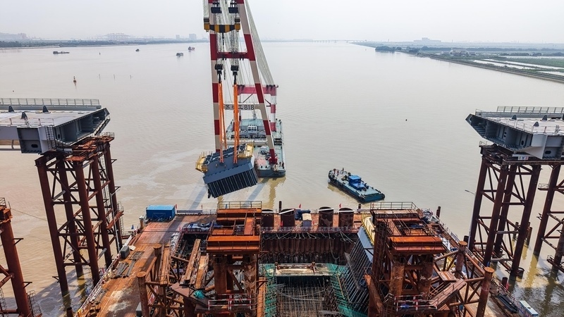 10月10日,由中鐵建大橋局承建的萬龍大橋吊裝架設(shè)首節(jié)段主塔。位于廣州南沙區(qū)的萬龍大橋跨越珠江口龍穴南水道,全長5146米,主橋長1150米,主跨608米,為粵港澳大灣區(qū)又一世界級(jí)橋梁。