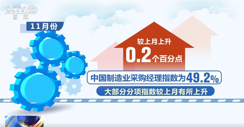 11月份中國制造業(yè)采購經(jīng)理指數(shù)為49.2%,較上月上升0.2個百分點(diǎn),大部分分項(xiàng)指數(shù)較上月有所上升。