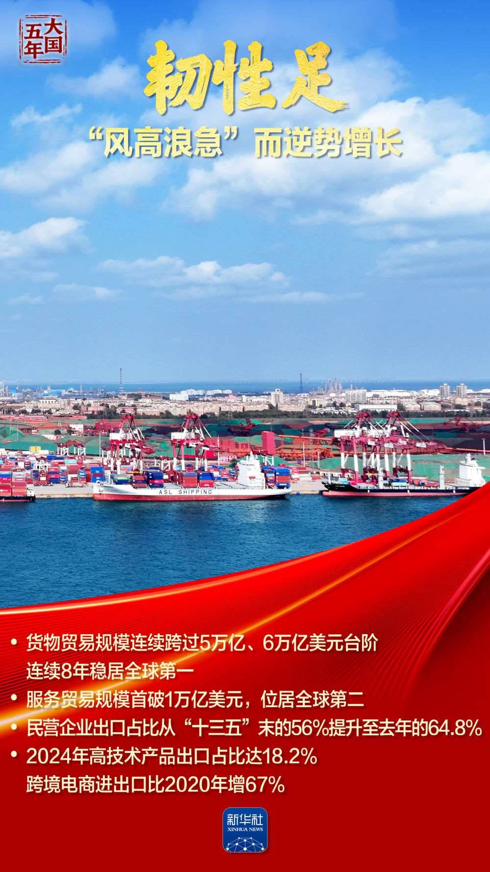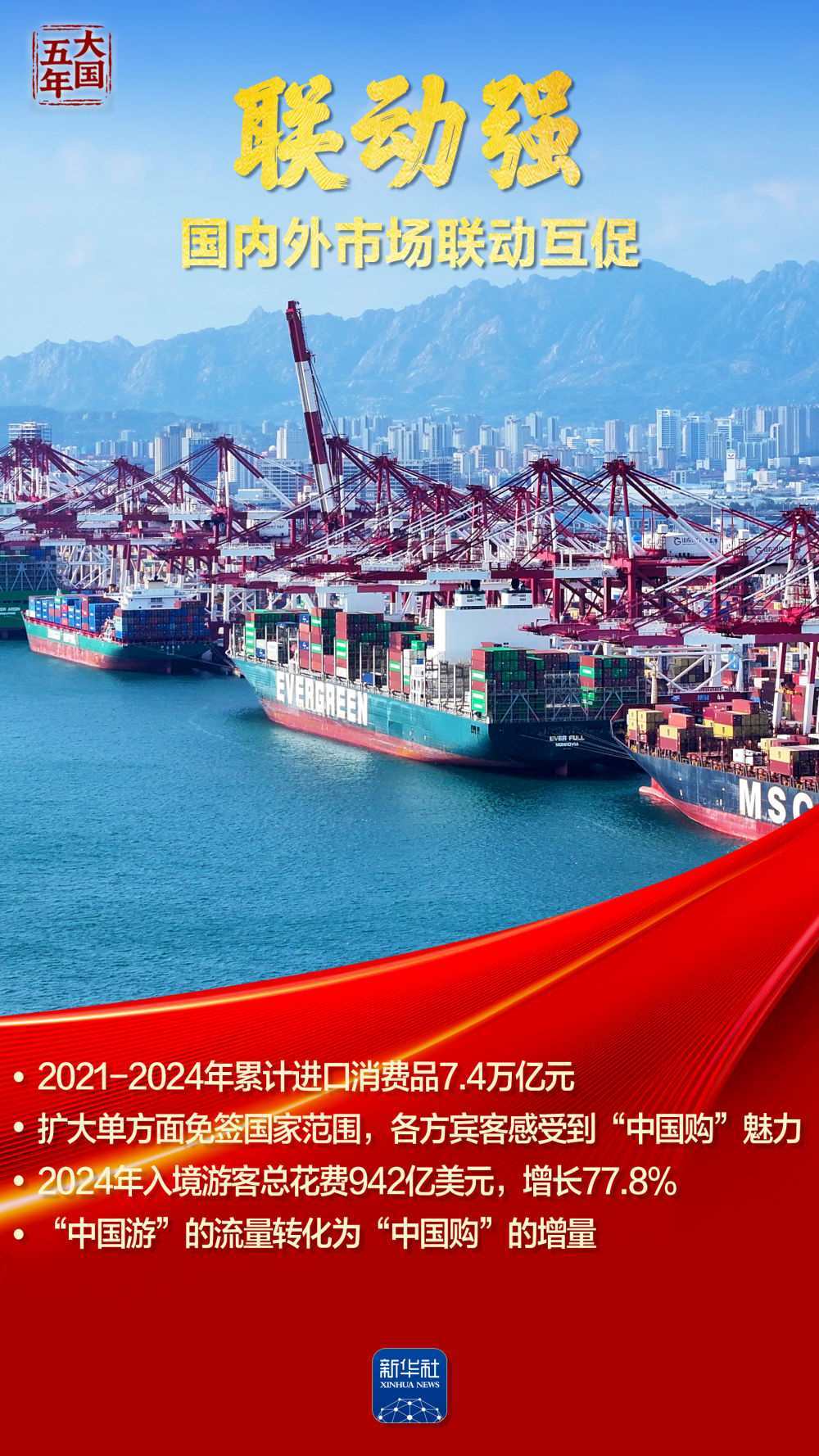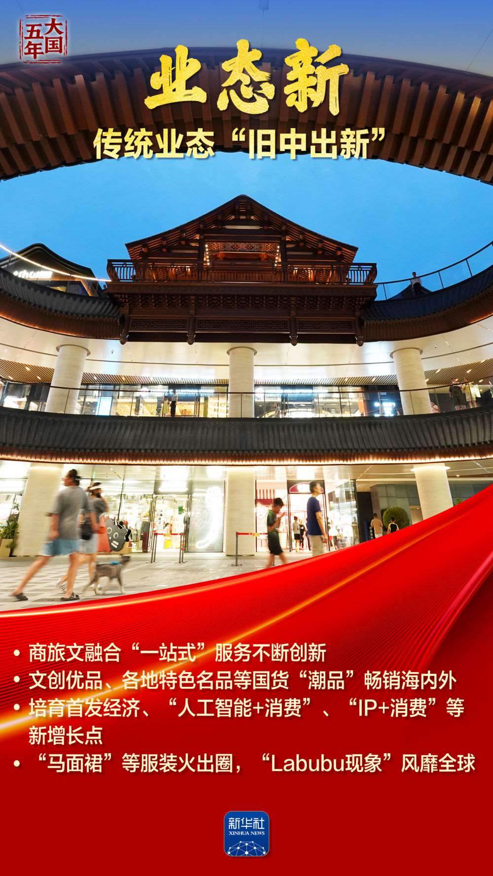 這五年,“智能”“綠色”煥新潮涌,國風文創(chuàng)、數(shù)字消費勾勒品質生活新圖景;服務消費快速增長折射結構優(yōu)化;“中國機遇”惠及世界,“中國市場”成為共享市場。跟隨海報,共同見證超大規(guī)模市場蘊藏的磅礴底氣,感受提振內需釋放的澎湃動力。