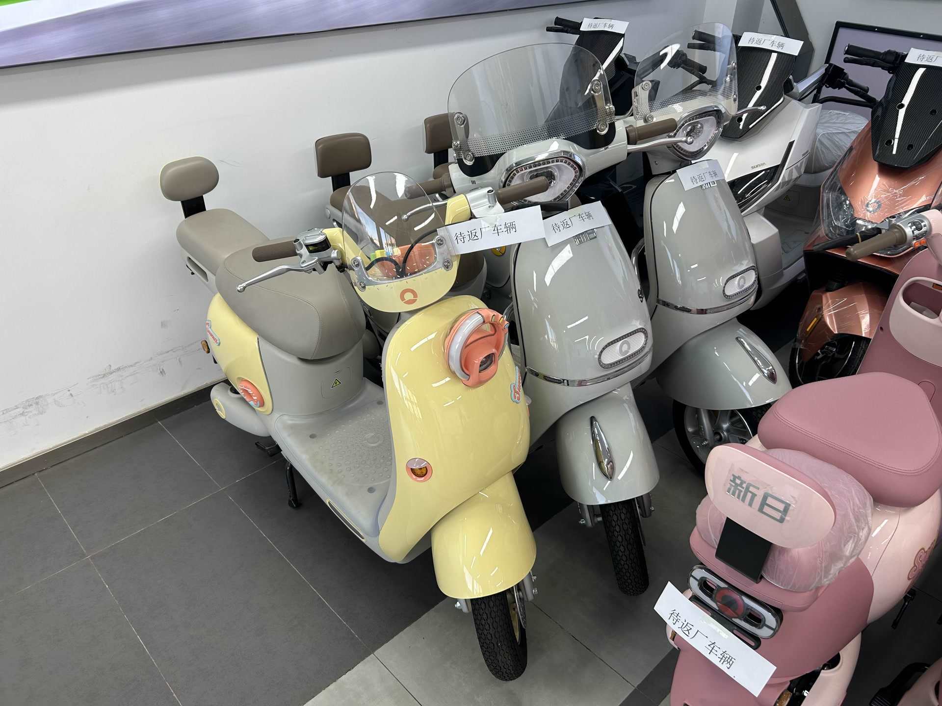 新日電動(dòng)車店,擺著不少待返廠的老國標(biāo)車