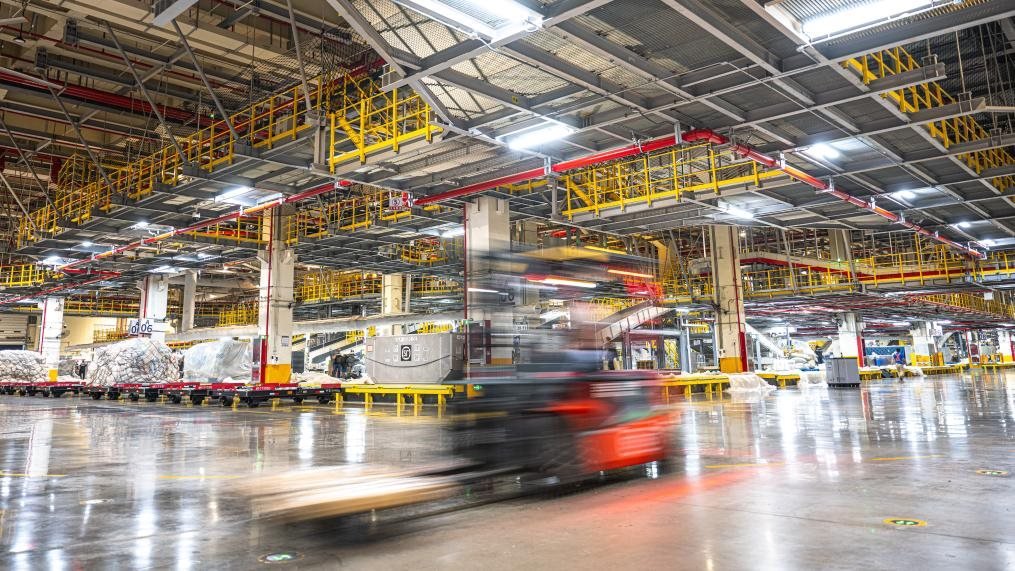 跟隨轉(zhuǎn)運車,記者來到了建筑面積達75萬平方米的機場“工”字形轉(zhuǎn)運中心。這里,“快點、快點”的催促聲與機器有節(jié)律的運行聲形成交響,在2萬多臺自動分揀設(shè)備和50多公里長傳送帶的支持下,工人們熟練地將數(shù)量規(guī)格不一的包裹抱起、分類、組合、打包,再拼裝出多個符合航空貨運規(guī)格和形狀要求的大包裹。