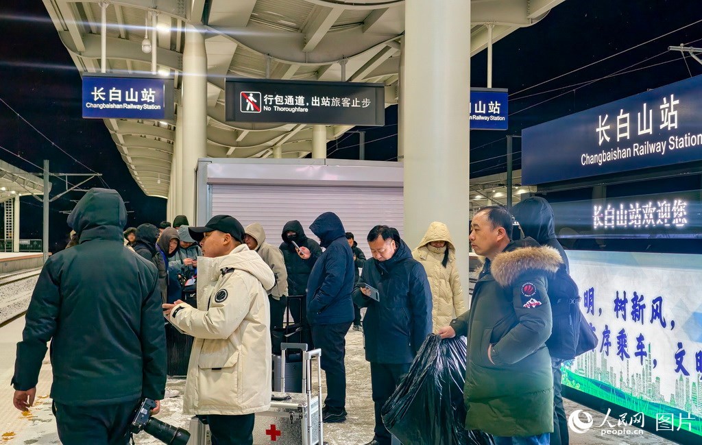 旅客在長白山站站臺上候車。