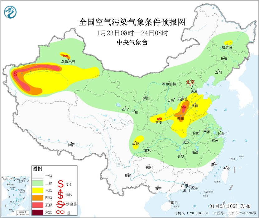 中國網(wǎng)1月23日訊 據(jù)中央氣象臺(tái)消息,23日至25日,華北中南部、黃淮中西部、汾渭平原、四川盆地等地大氣擴(kuò)散條件較差,有輕至中度霾天氣。25日,受冷空氣影響,華北中南部霾天氣減弱或消散。此外,24日至25日,受冷空氣大風(fēng)影響,西北部分地區(qū)有沙塵天氣。