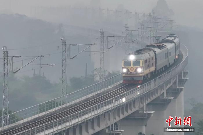 圖為2025年11月,檢測列車正在通過隆瀘敘鐵路高架橋梁段(資料圖)。蜀道鐵投集團(tuán)供圖