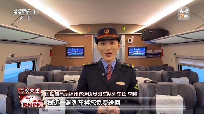 國鐵南昌局福州客運段貴陽車隊列車長 李越:您只需要找到列車的工作人員,出示身份證件,列車長核驗好身份信息,開具客運記錄。又有旅客問,我下車的時候該找誰呢,您先別著急,列車長會在最近的前方站將您交接下車,車站的工作人員會安排最近一趟列車將您免費送回。