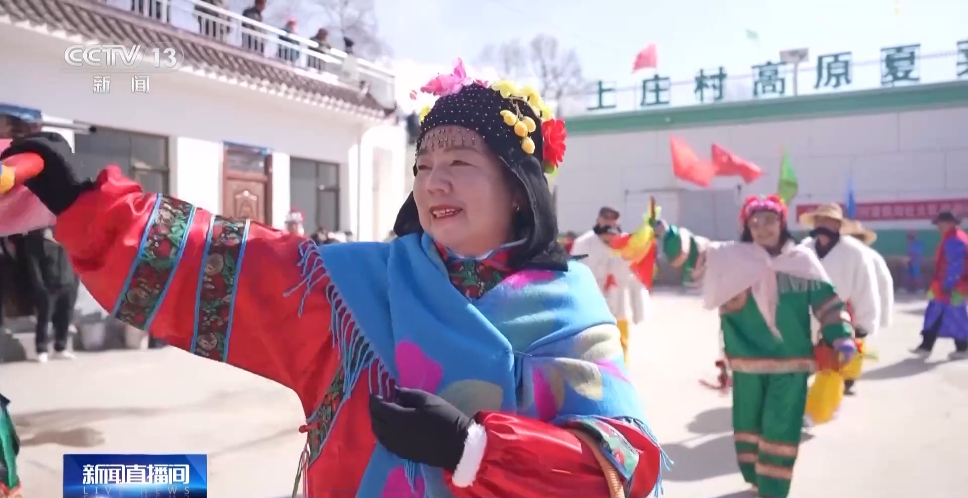 當(dāng)?shù)乇硌莸纳缁鸾旭R銜山秧歌,是甘肅省級(jí)非遺,一種以歌舞等民間藝術(shù)形式演繹本地農(nóng)耕文化的活動(dòng)。上莊村外出務(wù)工的村民較多,村里的社火表演已經(jīng)中斷十多年。這次村里提出重啟社火,村民們熱情高漲、踴躍報(bào)名。