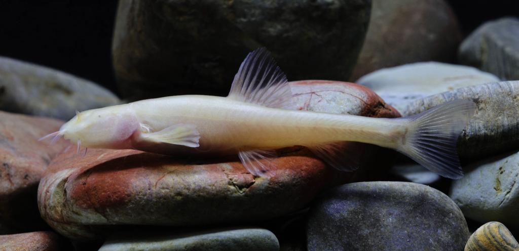 “納雍盲高原鰍”被發(fā)現(xiàn)于貴州省納雍縣張家灣鎮(zhèn)的一處地下溶洞中。作為典型的穴居魚類,該物種演化出鮮明的洞穴適應(yīng)性特征:個體體形偏小,鱗片已完全退化消失,身體呈透明淡粉色;眼睛高度退化,部分個體僅殘留細(xì)小的黑色眼點;同時,其附肢適度延長、感覺系統(tǒng)發(fā)達(dá),以此適應(yīng)黑暗、封閉的地下環(huán)境。通過形態(tài)學(xué)對比與分子生物學(xué)檢測證實,它被確認(rèn)為從未被記載的新種。