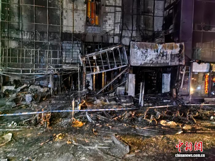 29日1時(shí)許,起火建筑物東側(cè)樓體外墻可見大面積燃燒痕跡,緊鄰?fù)ǖ赖膸组g門面房過火,受損嚴(yán)重。門面房前邊有多輛電動(dòng)自行車被燒成鐵架子。
