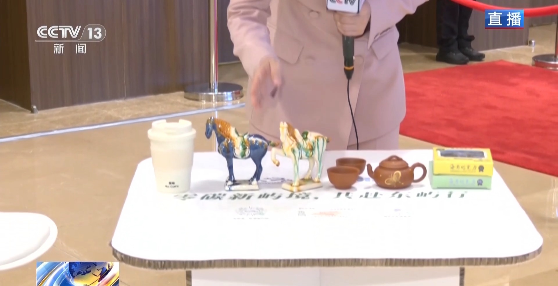 這個(gè)咖啡杯,就是用玉米生物質(zhì)轉(zhuǎn)換的聚乳酸材料制成,很容易降解。這組顏值出眾的陶藝與唐三彩,是采用綠電電窯燒制,既保留了傳統(tǒng)工藝的美感又大幅降低了碳排放;還有這款當(dāng)?shù)匕槭侄Y巧克力,包裝由甘蔗渣做成的;就連放東西的這張桌子,也是再生紙打造的環(huán)保家具,從邊緣能清晰地看到紙殼結(jié)構(gòu)。