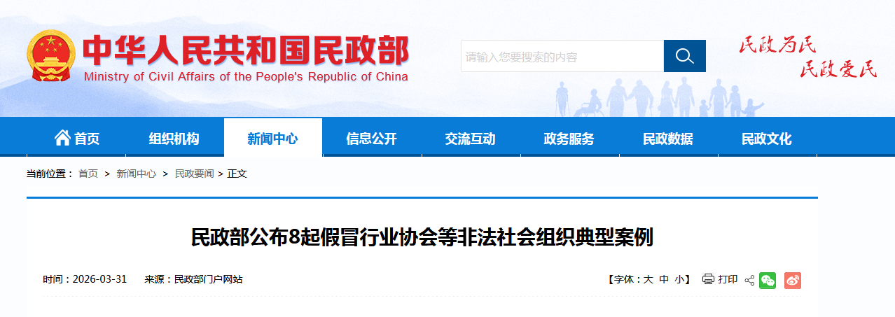 中國網(wǎng)3月31日訊 民政部網(wǎng)站今日公布8起假冒行業(yè)協(xié)會等非法社會組織典型案例,具體如下: