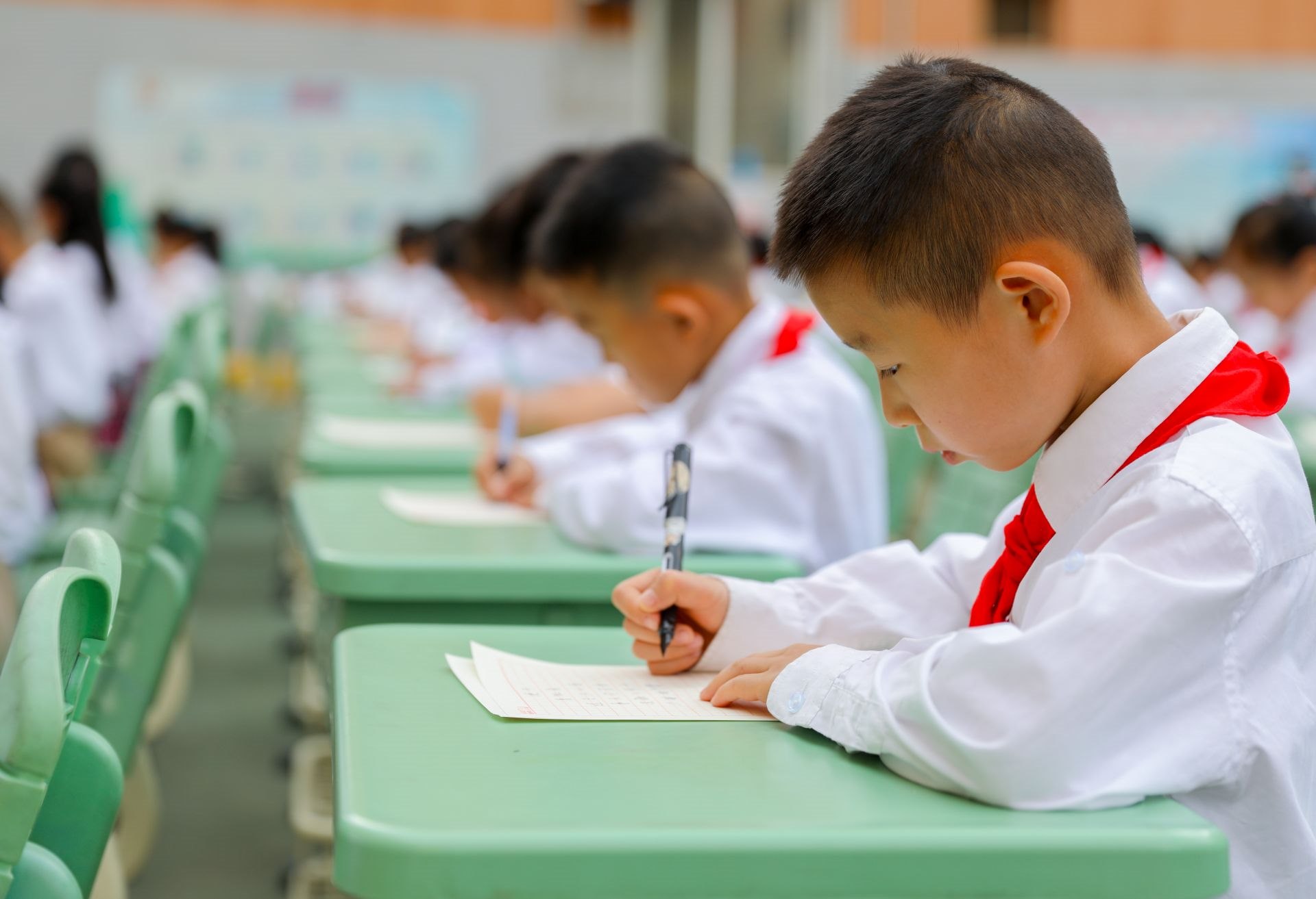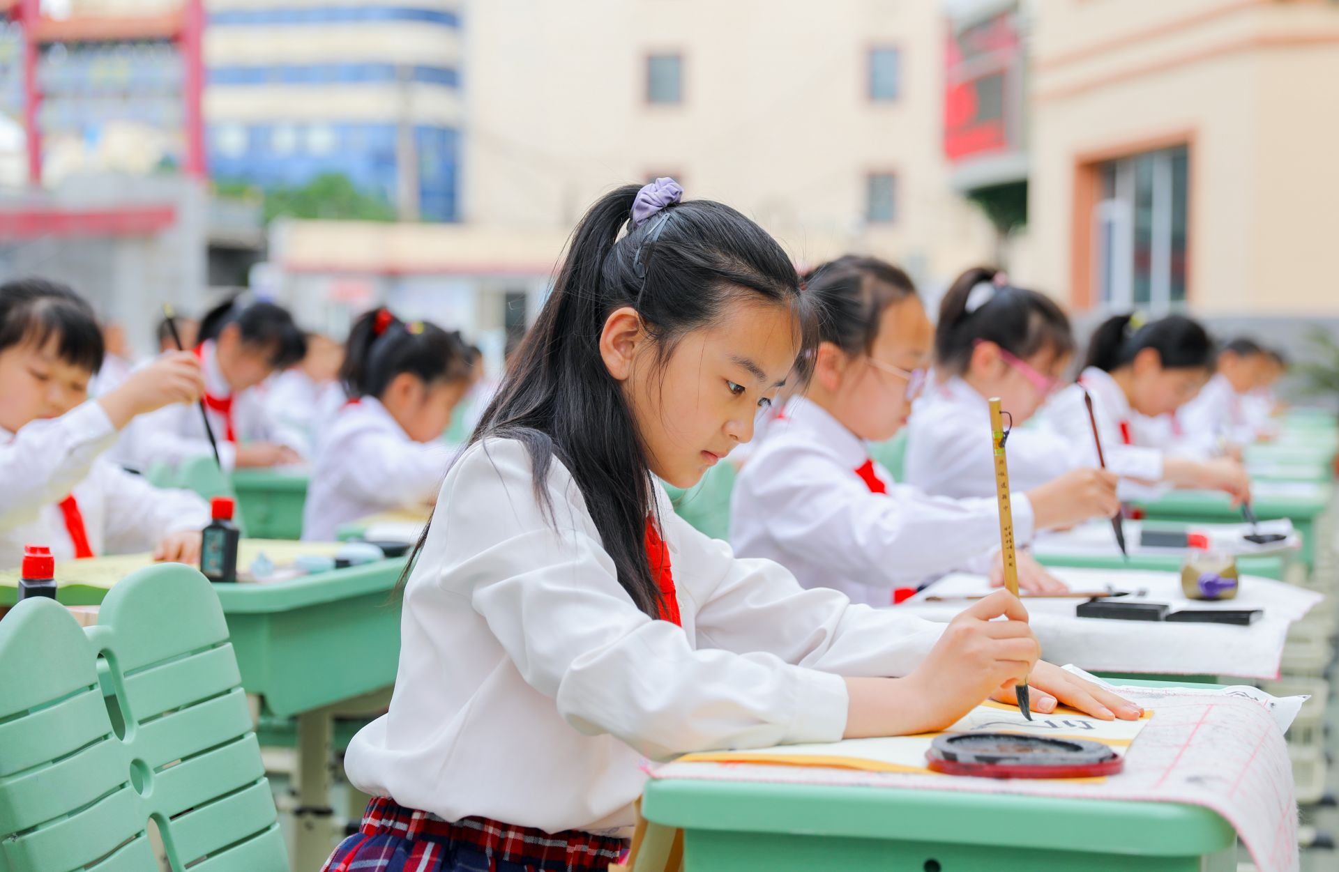 6月13日,呼和浩特市玉泉區(qū)恒昌店巷小學(xué)的學(xué)生們正在參加書法比賽。當(dāng)日,該校“校園書法文化節(jié)”漢字書寫大賽開賽,200多名學(xué)生在硬筆和軟筆項(xiàng)目上展開比拼。活動(dòng)旨在提高孩子們漢字書寫水平,弘揚(yáng)中華民族優(yōu)秀傳統(tǒng)文化。