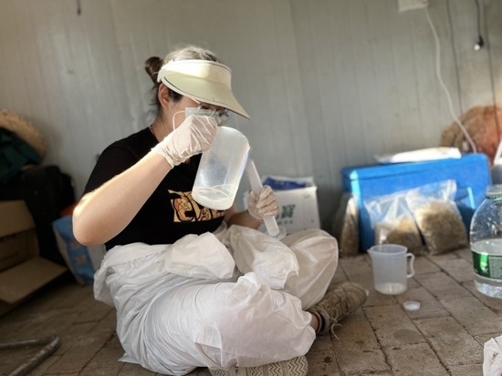 2022年7月,2022級碩士研究生張千子協(xié)助同學(xué)楊順然在科技小院進行采樣工作。圖片由受訪者提供