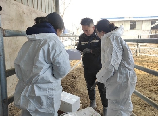2月21日,科技小院專項研究生閔勝男給養(yǎng)殖場的肉牛采血。圖片由受訪者提供