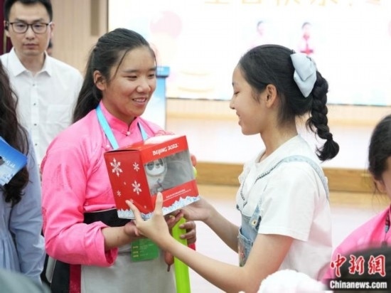 不僅如此,現(xiàn)場(chǎng)還有兩位北京小朋友為他們送上了一份禮物?!拔沂盏搅艘粋€(gè)娃娃,我很喜歡這個(gè)禮物?!弊挎夭湃时е媾迹托』锇橛懻摿税胩焖降资茄蜻€是熊?,F(xiàn)在那個(gè)娃娃放在她的床頭,晚上陪著小姑娘一塊睡覺(jué)。