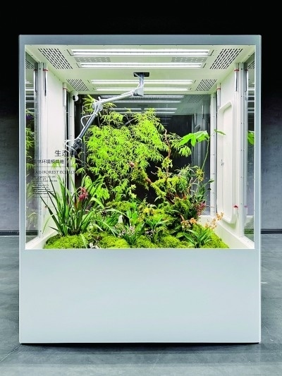 展廳一側(cè),三個(gè)立方體環(huán)境模擬艙并排放置,分別在近7立方米的空間內(nèi)模擬了雨林、海島、沙漠三種生態(tài)環(huán)境,引來(lái)許多觀眾圍觀?!霸诟邩橇至⒌亩际?,很多人都向往擁有一方屬于自己的自然天地。為人們?cè)谑覂?nèi)打造一片‘原始森林’便成了我們的使命?!逼放苿?chuàng)始人李軍介紹,設(shè)計(jì)過(guò)程中,團(tuán)隊(duì)遇到的一大的難點(diǎn)就是在保證室內(nèi)環(huán)境舒適度的同時(shí),讓各類植物健康生長(zhǎng)。“通過(guò)設(shè)計(jì)師的努力,我們首次將人造太陽(yáng)光源、溫濕度控制、空氣流通、智能微噴等系統(tǒng)整合于室內(nèi)種植模擬環(huán)境中,實(shí)現(xiàn)了室內(nèi)種植智能化、自動(dòng)化、現(xiàn)代化?!崩钴姳硎荆鲈O(shè)計(jì)亦要遵循自然法則,“人與自然和諧共生”是團(tuán)隊(duì)始終不變的設(shè)計(jì)宗旨。