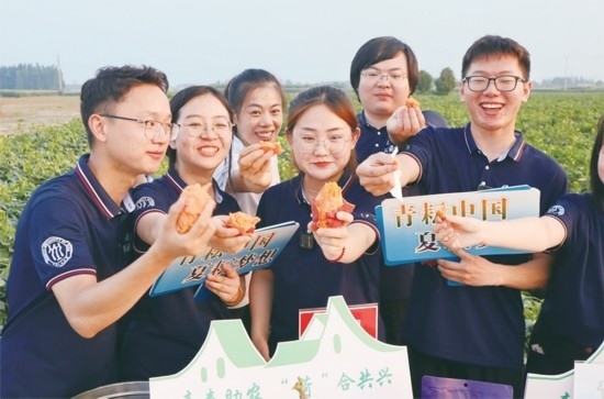 圖為2023年暑期,中國(guó)人民大學(xué)博士生服務(wù)團(tuán)在山東菏澤圍繞“人才產(chǎn)業(yè)融合發(fā)展賦能鄉(xiāng)村振興路徑探索”課題進(jìn)行調(diào)研,并開(kāi)展“青耘中國(guó)·夏耘夢(mèng)想”公益助農(nóng)直播活動(dòng)。 中國(guó)人民大學(xué)供圖
