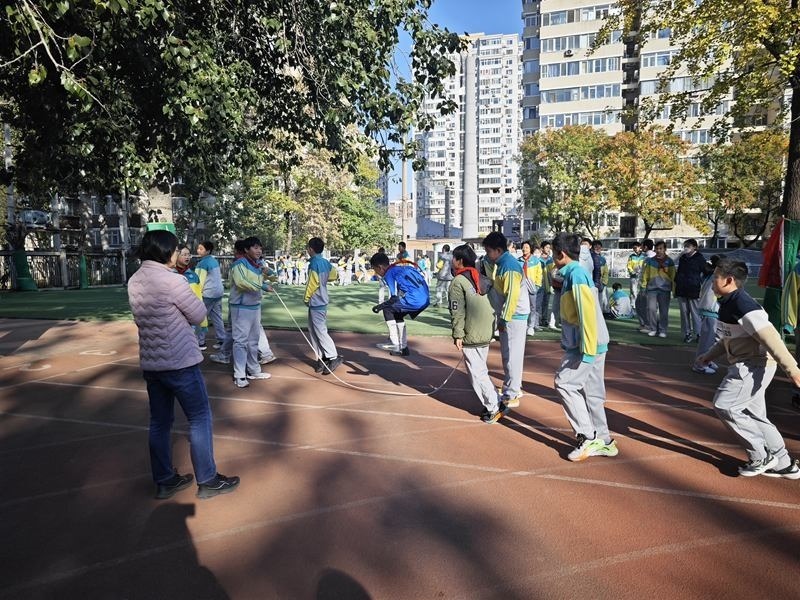 為了引導孩子們課間走出教室,北醫(yī)附小根據(jù)季節(jié)設計大型集體項目,比如秋季開展的跳長繩,老師們也參與進來搖繩,帶動更多孩子參加體育鍛煉?!白寣W生在課間得到充分休息、活動,才能保證學生的課堂狀態(tài),從而促進課堂教育教學質(zhì)量提升?!碧飮⒈硎?。