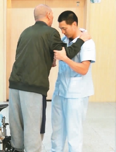 “比如在攙扶老陸進(jìn)行康復(fù)訓(xùn)練時,我會說‘老陸,雄起’來鼓勵他。晚上睡前,我也會和他聊天,告訴他‘有任何需要我都會在身旁’?!焙喆蟾缯f。