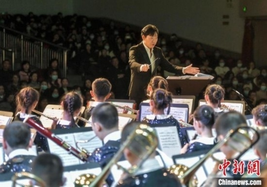 12月27日,新疆烏魯木齊市沙依巴克區(qū)教育系統(tǒng)“龍行龘龘 樂動童年”2024年交響管樂新年音樂會在該市青少年宮舉辦,來自烏魯木齊市第27小學(xué)的交響管樂團(tuán)演奏了《紅旗頌》、《茉莉花》等經(jīng)典曲目,并與絲路名師合唱團(tuán)合作演出《青春之舞》、《最炫民族風(fēng)》等曲目。據(jù)介紹,該交響管樂團(tuán)成立于2014年,規(guī)模從最初的40余人發(fā)展到現(xiàn)今近70人,團(tuán)員平均年齡10歲。