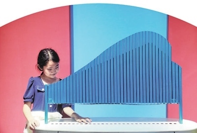 科普教育山東省濰坊市高密市科技館內(nèi),小朋友在體驗(yàn)音樂科普設(shè)備。李海濤攝(新華社發(fā))