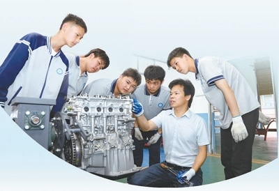 江西萍鄉(xiāng)市湘東中等專業(yè)學(xué)校,學(xué)生在學(xué)習(xí)發(fā)動(dòng)機(jī)拆裝與檢測(cè)技能。任乾良攝(影像中國(guó))