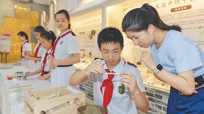 走進廣東省廣州市越秀區(qū)朝天小學的校園,耳邊傳來清脆的童聲,不時聞到中藥材的絲絲清香?!袄蠋焸儊砗纫槐├姘俸巷嫲桑玫氖仟毤遗浞?,甜甜的,好好飲?!睅酌麑W生迎面走來,熱情地分享中醫(yī)藥課程的實踐成果。
