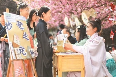 近年來,為更好地傳承詩歌文化,貴州省黔西市觀音洞鎮(zhèn)沙井小學(xué)每年春天都會舉辦校園詩歌文化節(jié)系列活動,老師帶領(lǐng)學(xué)生身著漢服寫詩歌,朗誦詩歌,猜詩歌謎語。圖為學(xué)生在向老師朗誦自己寫的詩歌。