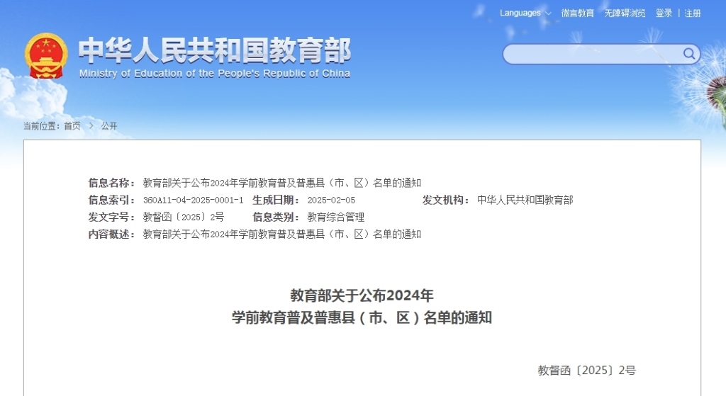教育部認(rèn)定一批學(xué)前教育普及普惠縣 近日,教育部印發(fā)通知,通過(guò)縣級(jí)自評(píng)、市級(jí)初核、省級(jí)......