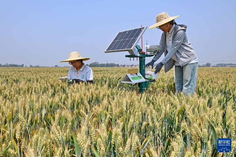 5月26日,河北省曲周縣傅莊科技小院的學(xué)生在麥田里測(cè)量植株高度。