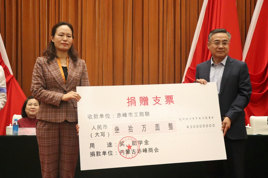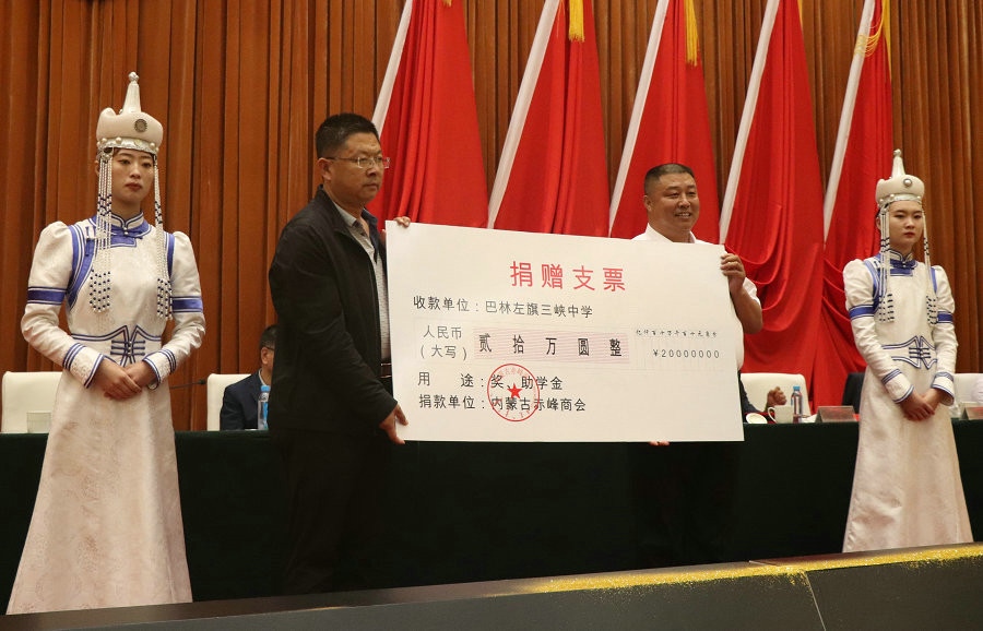 內(nèi)蒙古赤峰商會(huì)還聯(lián)合會(huì)員單位,利用商會(huì)成立之機(jī),向家鄉(xiāng)赤峰市工商聯(lián)、巴林左旗三峽中學(xué)、赤峰市青少年發(fā)展基金會(huì)和赤峰市政府捐贈(zèng)款物。