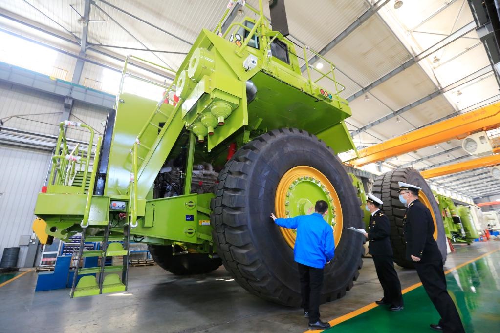 包頭海關關員監(jiān)管內(nèi)蒙古北方重型汽車股份有限公司出口的礦用車。(受訪者供圖)