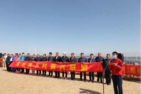 第18屆庫(kù)布其植樹(shù)節(jié)同步翻開(kāi)了“鞏固脫貧攻堅(jiān)成果、推動(dòng)鄉(xiāng)村振興發(fā)展”的新篇章。在鄂爾多斯、杭錦旗各級(jí)黨委政府的領(lǐng)導(dǎo)下,億利集團(tuán)攜手鄂爾多斯市50多家中小企業(yè)、杭錦旗工商聯(lián)、國(guó)家稅務(wù)總局杭錦旗稅務(wù)局和相關(guān)的企業(yè)、公益機(jī)構(gòu)和社會(huì)愛(ài)心人士,聯(lián)合庫(kù)布其沙區(qū)的杭錦淖爾村、刀圖嘎查、沙日召嘎查、圖古日格嘎查、白音補(bǔ)拉嘎查、查干布拉嘎查、格更召嘎查,成立庫(kù)布其鄉(xiāng)村振興聯(lián)盟(以下簡(jiǎn)稱“聯(lián)盟”),活動(dòng)現(xiàn)場(chǎng)宣讀了《庫(kù)布其鄉(xiāng)村振興聯(lián)盟宣言》。聯(lián)盟將致力于重點(diǎn)推進(jìn)分布式光伏發(fā)電項(xiàng)目建設(shè),打造黃河文化、沙漠文化、民俗文化相結(jié)合的文化旅游村,進(jìn)一步發(fā)掘古如歌文化,建設(shè)好沙漠綠色生態(tài)公園,高質(zhì)量推動(dòng)板下現(xiàn)代農(nóng)牧產(chǎn)業(yè)發(fā)展,同時(shí)依托億利在庫(kù)布其打造起來(lái)的一二三產(chǎn)業(yè)融合發(fā)展的產(chǎn)業(yè)平臺(tái),切實(shí)推動(dòng)庫(kù)布其周邊村嘎查鄉(xiāng)村振興。國(guó)家稅務(wù)總局杭錦旗稅務(wù)局在活動(dòng)現(xiàn)場(chǎng)宣傳了稅務(wù)支持服務(wù)營(yíng)商環(huán)境改善、減稅降費(fèi)、降碳擴(kuò)綠等惠民惠企政策,營(yíng)造“稅企村”共同助力黃河流域生態(tài)保護(hù)與高質(zhì)量發(fā)展、推動(dòng)鄉(xiāng)村振興的新格局。