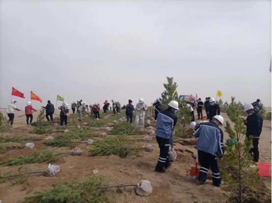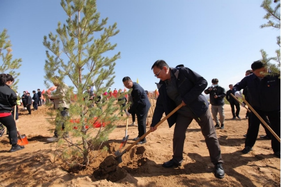 北疆新聞網(wǎng)、北疆新聞APP、北疆云消息(張博)黃河中上游沿岸,谷雨時(shí)節(jié),在庫(kù)布其沙漠和騰格里沙漠腹地,植樹(shù)擴(kuò)綠正隨著光伏治沙降碳而延伸,描繪著藍(lán)綠交織、水沙和諧、鄉(xiāng)村振興的工筆畫。4月22日是第53個(gè)世界地球日,也是第18屆庫(kù)布其植樹(shù)節(jié),蒙西基地庫(kù)布其200萬(wàn)千瓦光伏治沙項(xiàng)目現(xiàn)場(chǎng)、甘肅武威50萬(wàn)千瓦光伏治沙項(xiàng)目現(xiàn)場(chǎng)同步舉行大型植樹(shù)紀(jì)念活動(dòng),主題為“光伏治沙護(hù)河,庫(kù)布其降碳擴(kuò)綠與鄉(xiāng)村振興”,正式啟動(dòng)庫(kù)布其“十四五”1億棵碳匯林工程第二期種植。億利集團(tuán)董事長(zhǎng)王文彪表示:“‘十四五’期間,我們將在黃河流域的庫(kù)布其沙漠、烏蘭布和沙漠、騰格里沙漠的億利治沙區(qū)域建設(shè)上百公里治沙護(hù)河碳匯林帶,2021年已如期完成2000萬(wàn)棵種植任務(wù),2022年將繼續(xù)通過(guò)‘政策+產(chǎn)業(yè)+公益’的模式,實(shí)施光伏板下種植和沙漠生態(tài)種植,確保完成2000萬(wàn)棵種植任務(wù)。億利庫(kù)布其治沙科技和經(jīng)驗(yàn)?zāi)J揭沧呱狭宋鞑啬乔吆吆0蔚貐^(qū),成功種活了近40萬(wàn)株鄉(xiāng)土樹(shù)種,我們將加快推動(dòng)那曲城鎮(zhèn)植樹(shù)關(guān)鍵技術(shù)研發(fā)與綠化模式示范項(xiàng)目成果的規(guī)模化推廣?!被顒?dòng)現(xiàn)場(chǎng)全面啟動(dòng)了國(guó)家在庫(kù)布其沙漠規(guī)劃的退化林修復(fù)工程、蒙西基地2GW光伏治沙和甘肅武威500兆瓦光伏治沙項(xiàng)目板下生態(tài)種植工程、杭錦旗林草局和團(tuán)委保護(hù)母親河工程、螞蟻森林、大鉦資本庫(kù)布其沙漠雙碳公益林、鄂爾多斯中小企業(yè)庫(kù)布其公益林、杭錦旗工商聯(lián)林、杭錦旗稅務(wù)碳匯林等多個(gè)生態(tài)植樹(shù)項(xiàng)目。