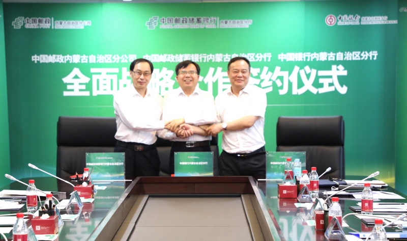 中國銀行內(nèi)蒙古分行與中國郵政內(nèi)蒙古分公司、中國郵政儲蓄銀行內(nèi)蒙古分行簽署全面戰(zhàn)略合作備忘錄