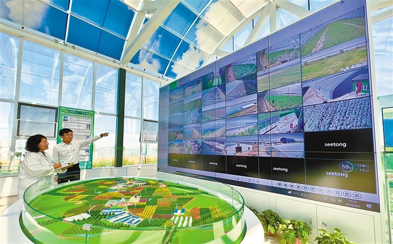 近日,巴彥淖爾市杭錦后旗二道橋鎮(zhèn)鄉(xiāng)村振興設(shè)施農(nóng)業(yè)產(chǎn)業(yè)園區(qū)工作人員正在記錄現(xiàn)代農(nóng)業(yè)數(shù)字平臺(tái)監(jiān)測(cè)數(shù)據(jù)。據(jù)悉,該園區(qū)占地2000畝,投資4600萬(wàn)元,是集智慧農(nóng)業(yè)管理、引黃滴灌示范、集中連片種植等多項(xiàng)功能為一體的現(xiàn)代農(nóng)業(yè)產(chǎn)業(yè)園區(qū)。通過(guò)現(xiàn)代農(nóng)業(yè)數(shù)字平臺(tái),進(jìn)行智能管控、農(nóng)產(chǎn)品質(zhì)量檢測(cè)、科技培訓(xùn)、遠(yuǎn)程科技指導(dǎo),同時(shí)讓更多的農(nóng)戶(hù)利用APP與平臺(tái)共享數(shù)據(jù)資源,實(shí)現(xiàn)田間自動(dòng)化管理。園區(qū)通過(guò)平臺(tái)智能管控,今年第一茬種植麒麟西瓜,第二茬計(jì)劃種植葉菜類(lèi),兩茬畝均效益預(yù)計(jì)在2萬(wàn)元以上。(記者 孟和朝魯 攝影報(bào)道)