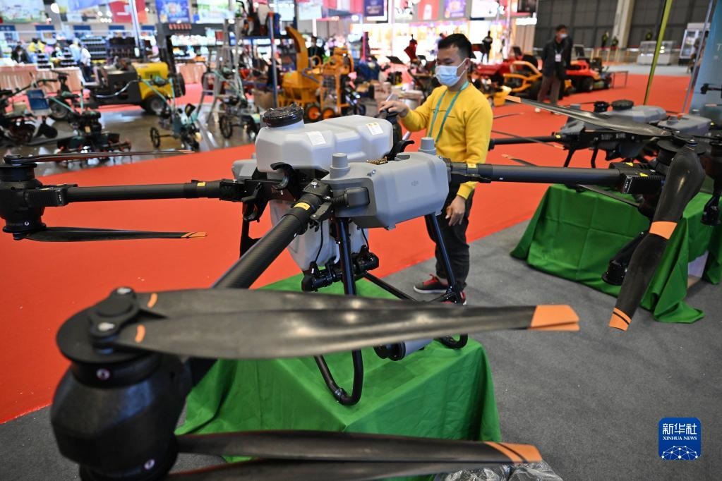 這是在科技強(qiáng)農(nóng)館展示的植保無(wú)人機(jī)(12月15日攝)。新華社記者 郭程 攝
