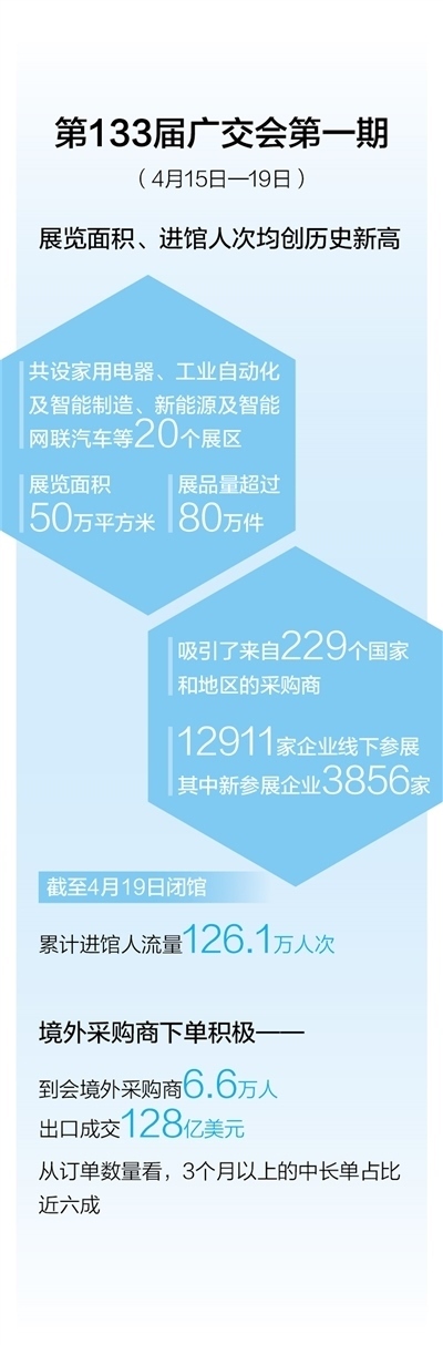 在這里,新產(chǎn)品密集發(fā)布,新訂單不斷促成,新朋友越來(lái)越多。本報(bào)記者與廣交會(huì)第一期現(xiàn)場(chǎng)的參展商、采購(gòu)商、服務(wù)商、策展方一道,共同感受中國(guó)外貿(mào)的亮點(diǎn)和趨勢(shì)、中國(guó)與世界共享發(fā)展機(jī)遇的胸襟和誠(chéng)意。