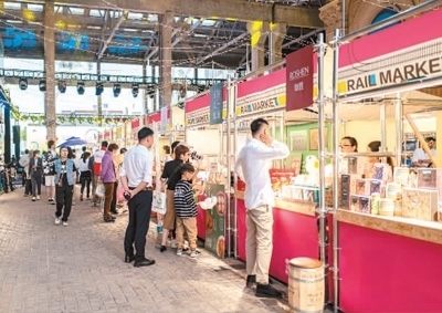 5月5日,上海市寶山區(qū)淞南鎮(zhèn)中成智谷創(chuàng)意園區(qū),市民在逛“數(shù)字零售”鐵軌市集。王 初攝(人民視覺(jué))