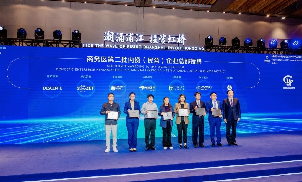5月25日,“潮涌浦江·投資虹橋”2023虹橋國際中央商務區(qū)投資促進大會現場,7家新認定的內資(民營)企業(yè)總部集體授牌。新華社記者周蕊 攝