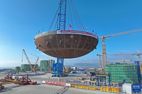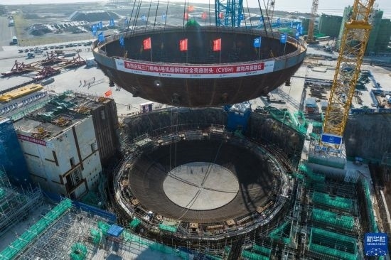 5月29日,在浙江省臺(tái)州市三門縣,三門核電二期工程4號(hào)機(jī)組核島鋼制安全殼底封頭順利吊裝就位。這是4號(hào)機(jī)組核島反應(yīng)堆廠房吊裝的首個(gè)大型模塊,標(biāo)志著該廠房主體結(jié)構(gòu)施工開始。三門核電二期工程4號(hào)機(jī)組于3月22日開工,整個(gè)二期工程建成投產(chǎn)后,一、二期裝機(jī)總?cè)萘繉⑦_(dá)到500萬千瓦,年發(fā)電量預(yù)計(jì)可達(dá)到400億千瓦時(shí)。