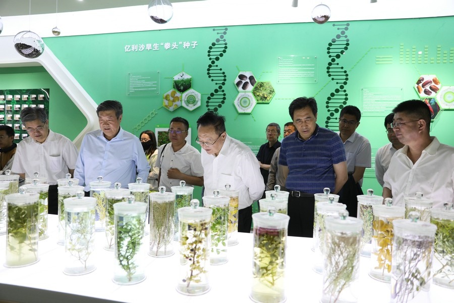 院士專(zhuān)家在庫(kù)布其沙旱生灌木種質(zhì)資源庫(kù)參觀 記者 張楊攝影